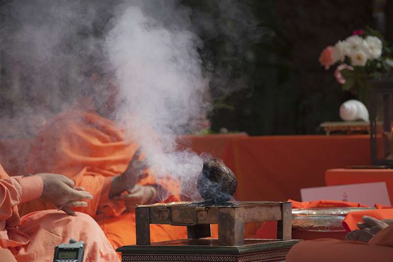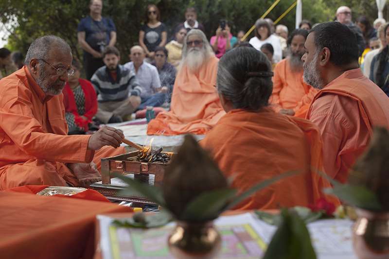 In India, the 18th April is New Year's Day where there are many celebrations and festivities. Swami Atmavidyananda led us all in the beautiful celebration of Puja. This is a prayer ritual of devotional worship sometimes used to spiritually celebrate an event — in this case the official inauguration of our Ashram. A fire ceremony was part of the Puja along with devotional hymns, prayers, chants and purification rituals to instill peace, harmony, love and compassion in the Ashram and its surroundings. The ceremony also included a ritual to invoke the loving and divine presence of Paramahamsa Hariharananda and the chanting of the Gayatri Mantra 108 times. Through this process of reverence, honour, homage, adoration, purification and cleansing, we together celebrated a new beginning, a new year and a new Ashram, which will now be officially known as the "Centre of Kriya Meditation".