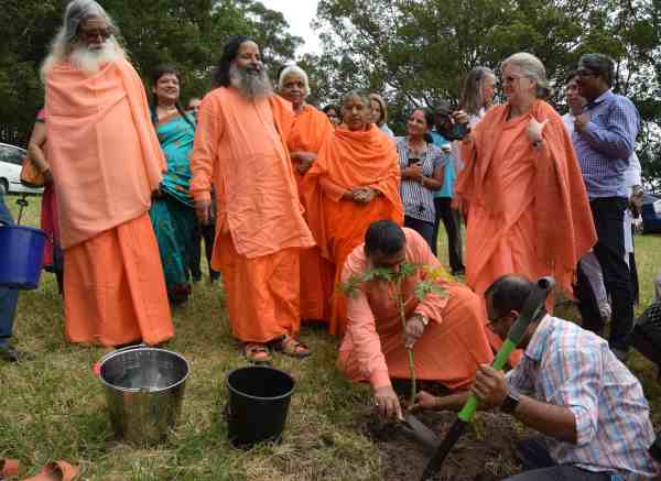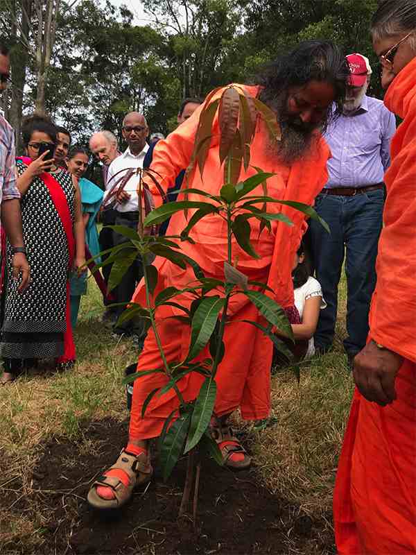 After the ceremony, a beautiful lunch was served to over 100 attendees including many non-Kriyavans. The Swami’s then participated in a tree planting ceremony where 4 fruit trees (2 mango, 1 paw paw/papaya and 1 banana) were planted to symbolise new life and new beginnings. After listening to a short address from our beloved Swami’s, the day’s events were closed with a silent meditation to give love and thanks to our Master’s for the wonderful blessings they have bestowed on us.