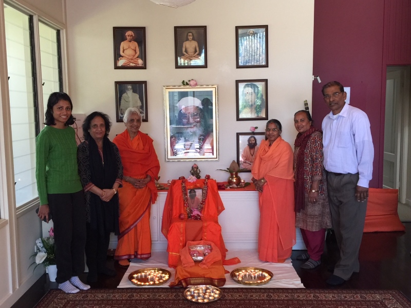 We had a beautiful celebration of Guruji’s birthday on 10 August at the ashram. We had disciples from the Central Coast and Sydney. A traditional Guru Paduka Puja was done by Swami Gurupriyananda and Swami Sarvatmananda. Then followed by a deepa yajna with chanting of maha mrityunjaya mantra, praying for the well-being of Guruji with disciples participating in the chanting. There was also the lighting of candles by the disciples wishing Guruji a happy birthday before the arati. A special meditation concluded the morning program. We then had a cake cutting and shared a festive lunch outdoors in the beautiful ashram premises.